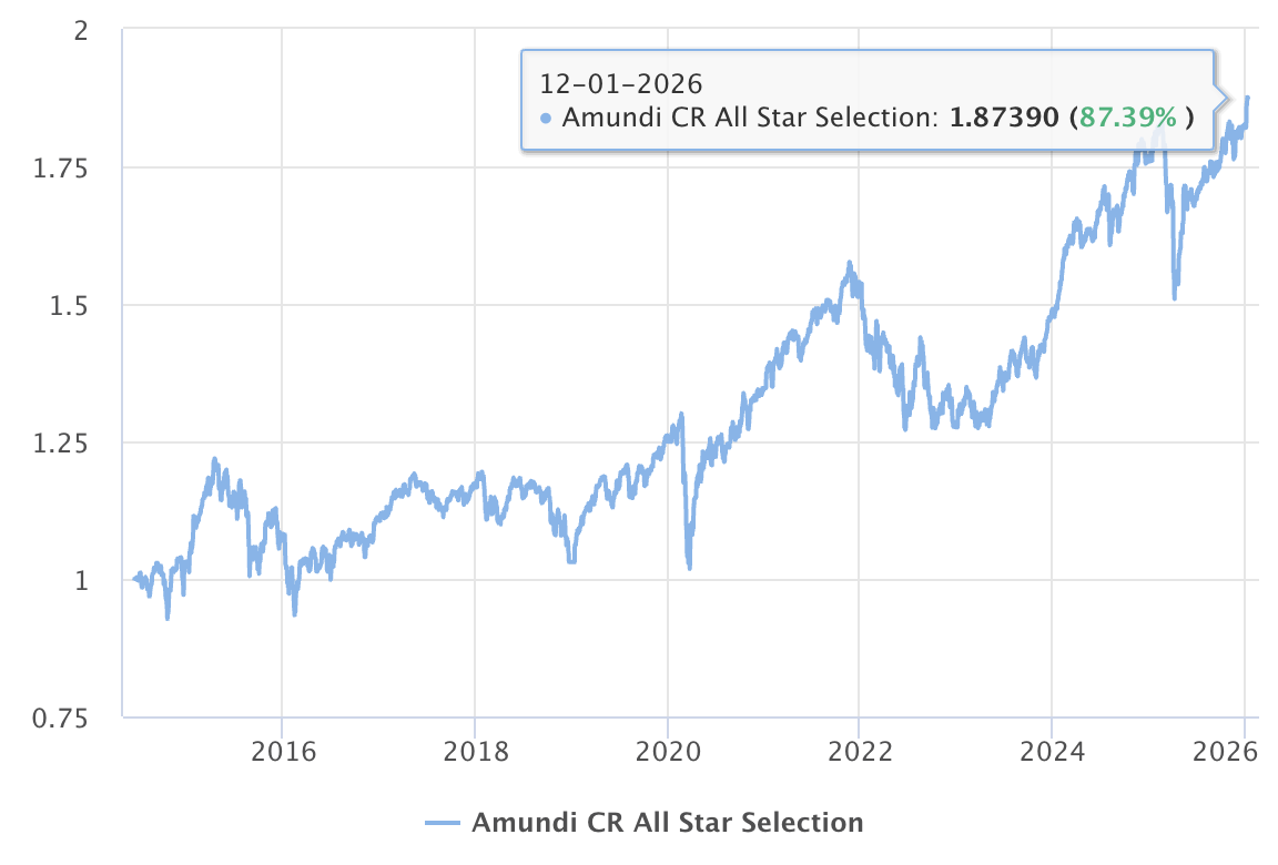Amundi CR All-Star Selection – jedná se převážně o akciový fond, který investuje do akciových nástrojů více jak z 80 %, se zaměřením na Severní Ameriku a Evropu. Průměrná roční výkonnost za 10 let je 6,25 % p.a.
