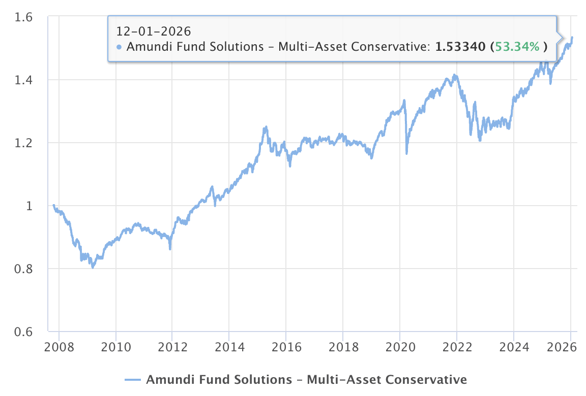 Amundi Fund Selection-Conservative – jedná se převážně o dluhopisový fond, který investuje do konzervativních nástrojů s poměrně krátkou durací. Průměrná roční výkonnost za posledních 10 let je 2,84 % p.a.